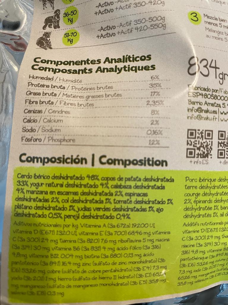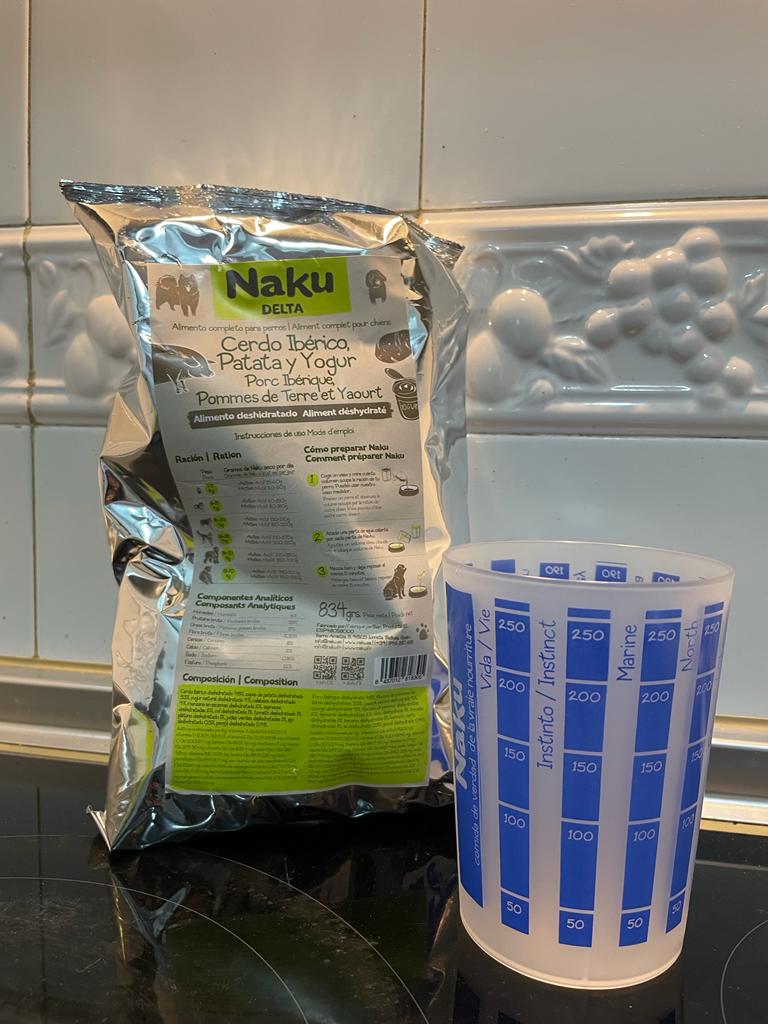 Naku Precios | Comida natural casera y deshidratada para perros. | 11 recetas y 1 especial cachorros. | Promedio de 10,67 euros cada 834 gramos de comida deshidratada. | ✅ No necesita frigorífico ni congelador. ✅ Ocupa menos espacio por ser deshidratada. ✅ Ofrecen multipack para combinar recetas preferidas. ❌ No ofrecen acompañamiento por veterinarios especialistas en nutrición. |